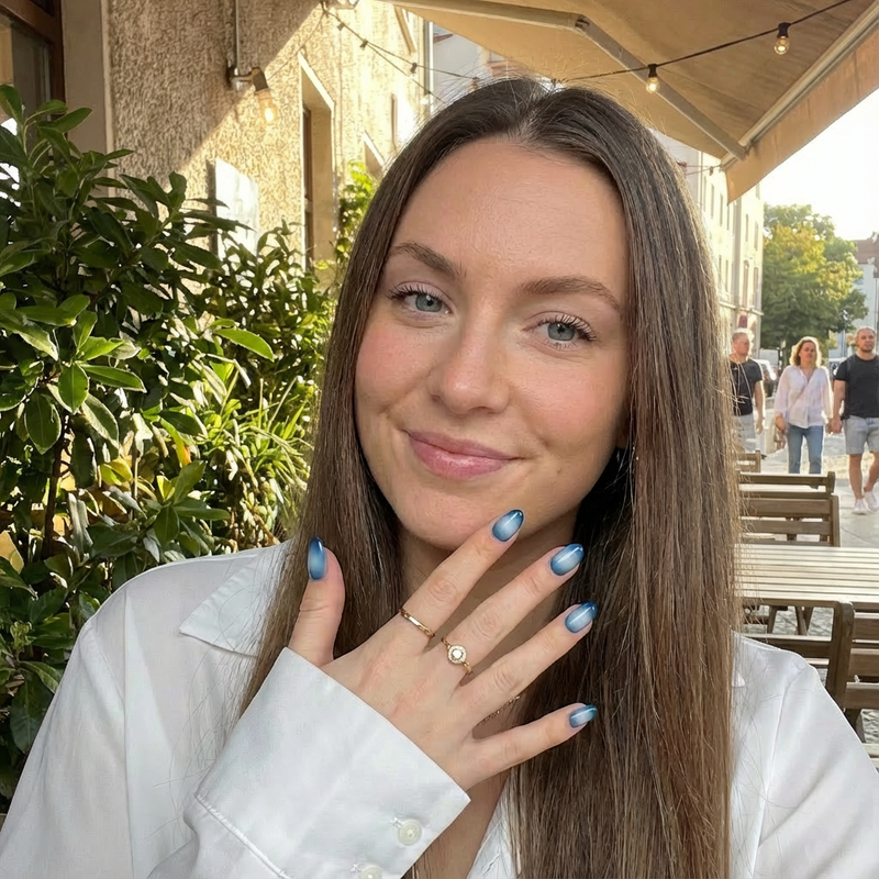 Most press-ons leave a visible "ledge" at the cuticle that catches hair. Our tapered cuticle base molds flush to your natural nail bed
